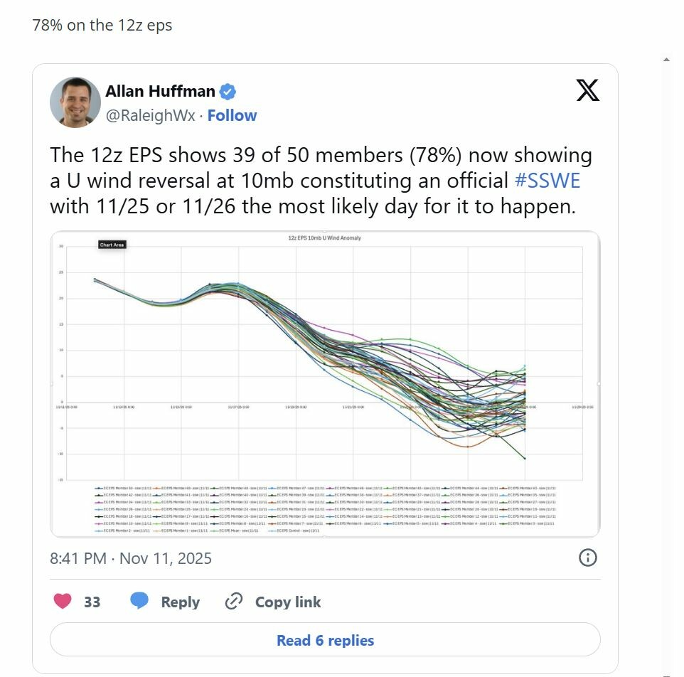 Zie plaatje. Het aantal leden stijgt. M.a.w. mogelijk een zeer zeldzame november SSW.
