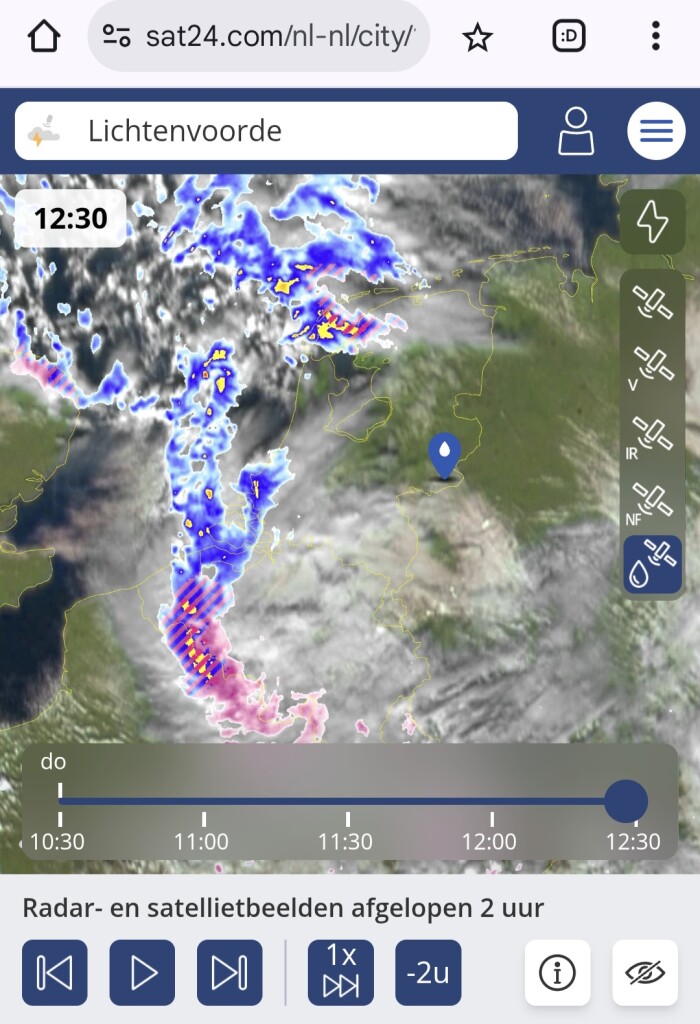 nu weer minder, gaat op en af met de neerslagintensiteit
