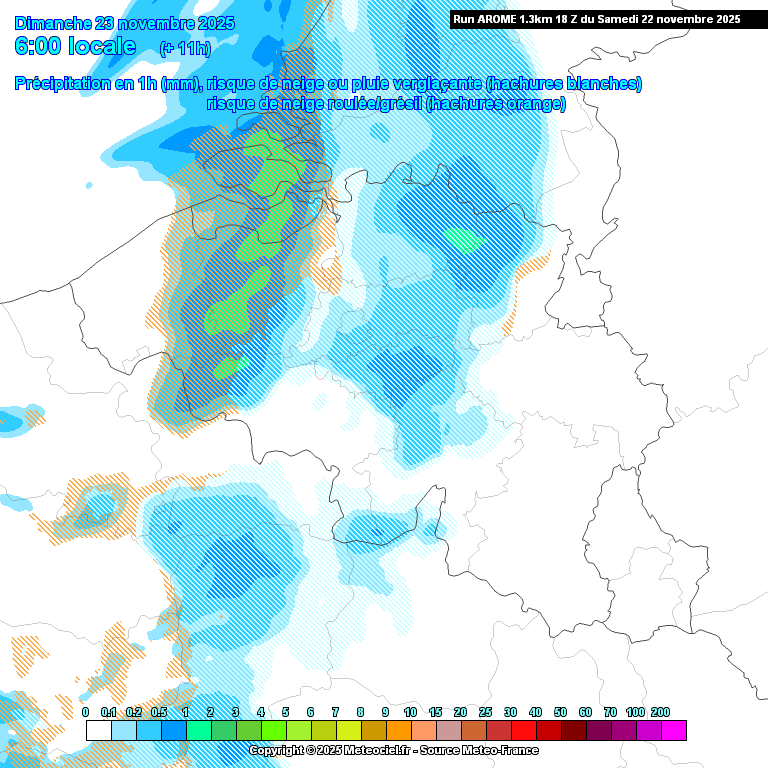 Arome laat heel het ding uitsneeuwen boven West en Oost-Vlaanderen. Sneeuw van nu tot morgenvroeg 8u.
