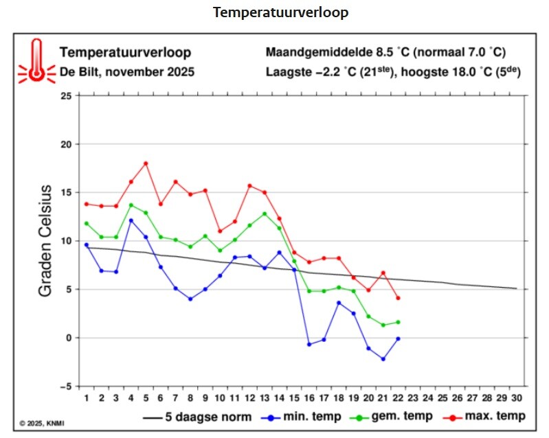 Het zou zomaar kunnen dat de mogelijk koudere periodes in het sterk opgewarmd klimaat niet veel meer te betekenen hebben als de afgelopen periode. Met lichte vorst in de nachten en af en toe wat winterse neerslag.