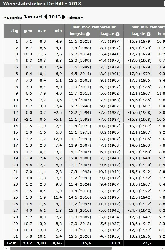 En in De Bilt, net als in 2009 en 2010 niet eens een koudegolf opleverde (warmte-eiland). Dat lukte tijdens die jaren hier gelukkig voor de statistiek nog wel.