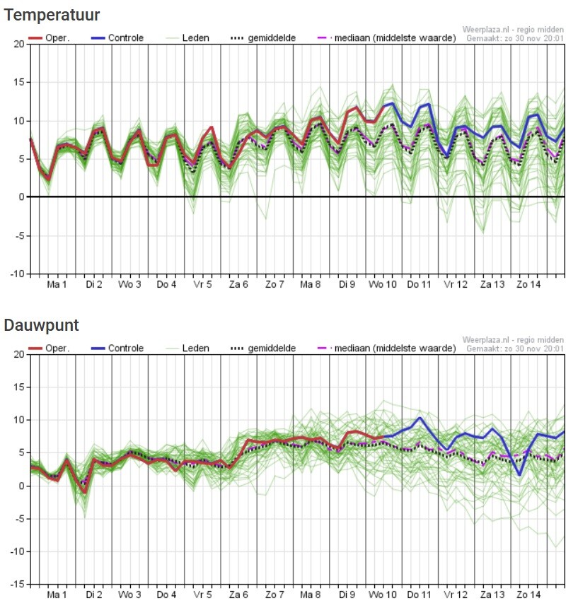 Samengevat is er de komende 10 dagen erg weinig kans op vorst of winterweer en zullen we het moeten doen met vrij zacht winterweer, voornamelijk veroorzaakt door de relatief hoge Tn.
