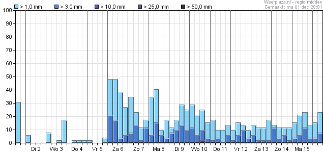 Daarna volgen er 4 dagen met helemaal geen kans en vanaf woensdag 10 december is er dagelijks een kleine kans.