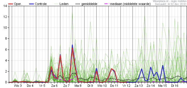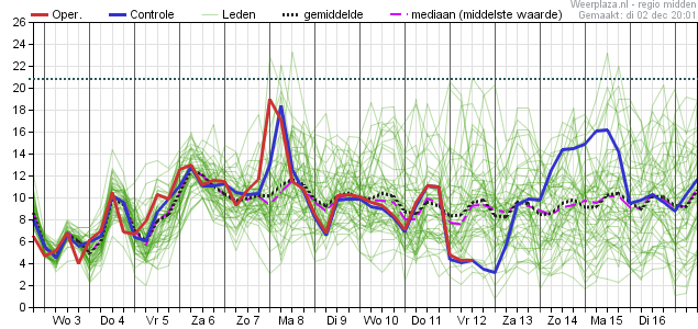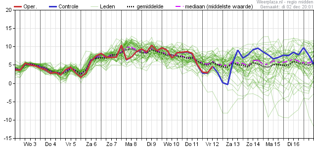 Ook hier is een groepje leden te zien die het behoorlijk fris/koud laat worden voor de tijd van het jaar, maar het merendeel kiest vooralsnog voor aanhoudend zacht met maxima rond de 10 graden.