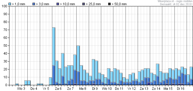 In de nacht van donderdag op vrijdag is er een kleine kans en daarna pas weer vanaf vrijdag 12 december maar nooit meer dan zo'n 10%