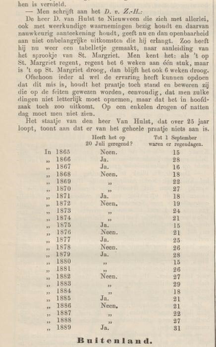 -Tegengestelde voorspelling: Als het op Sint-Margriet droog is, zou het zes weken lang droog blijven. [tekst AI]