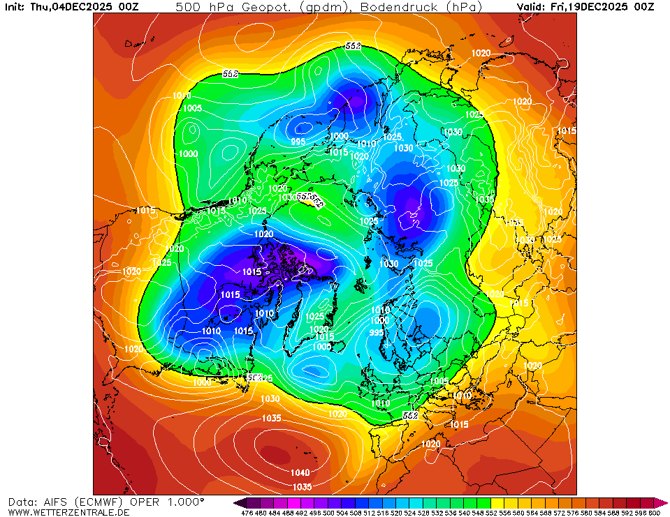 Blokkadevorming op de oceaan onder regie van dat laag aan de oostkust van Canada. Tezamen met de reeds verhoogde geo's boven Groenland en Spitsbergen komt er een noordelijke stroming op gang. Dat laag boven Scandi vult wat verder op en het laag net ten zuiden van IJsland volgt de 552-dam lijn en gaat als trekpaard dienen ergens boven ME. Maar zoals gezegd, werk aan de winkel