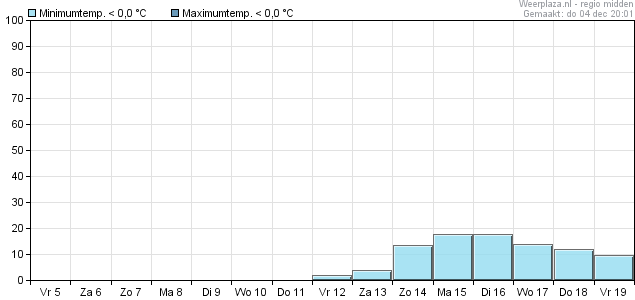 De komende week geen enkele kans op vorst en vanaf volgende week vrijdag dagelijks kans, maar wel een heel beperkte.
