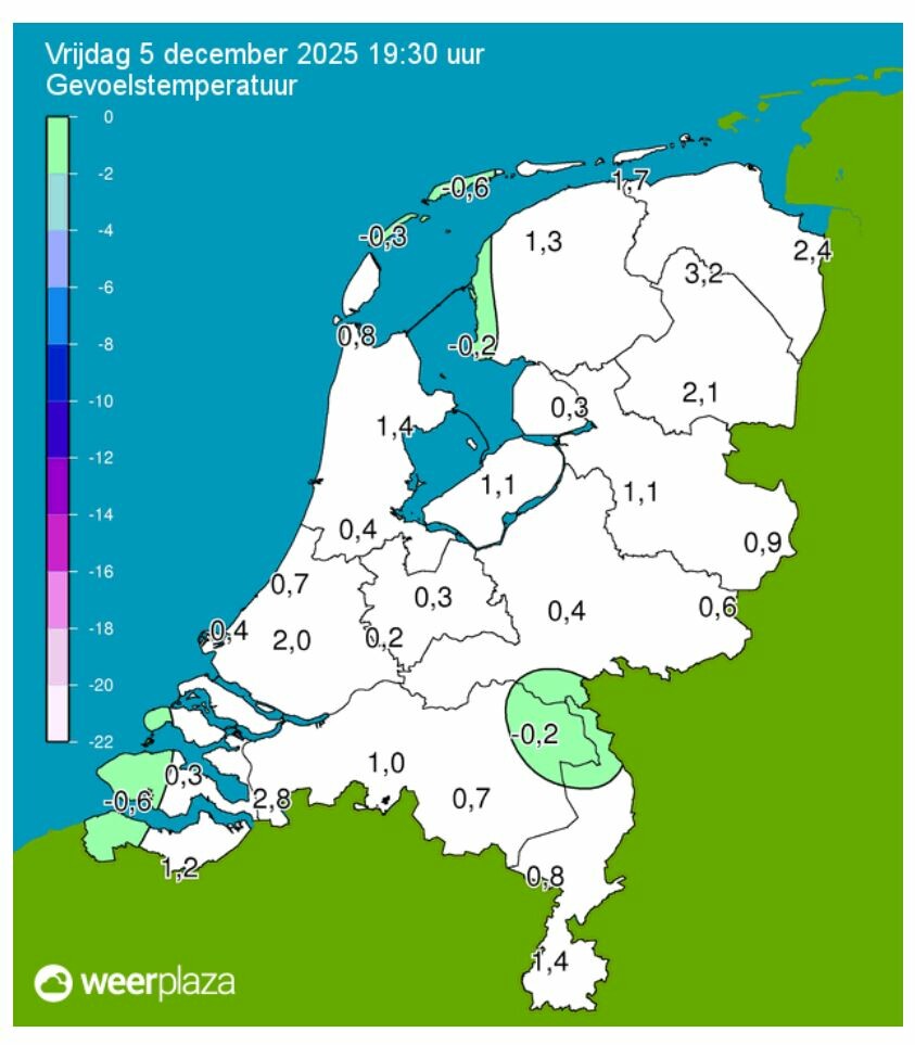 Nog even het vriespunt voelen (gevoelstemp. kaart)