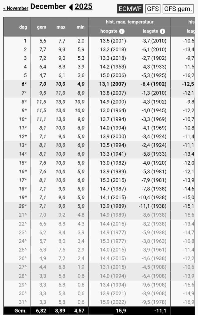 Maar stel dat eind december de temperaturen terug naar normaal zouden gaan, dan zou volgens de laatste berekeningen het gemiddelde "slechts" 6.8°C bedragen, nog ver van de 9 graden gemiddelde in 2015