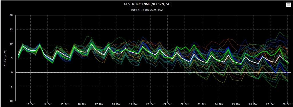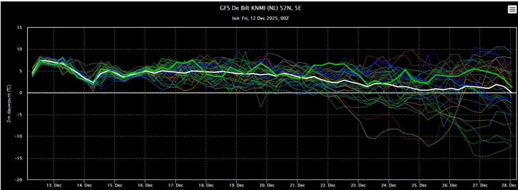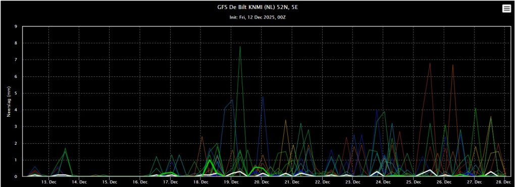 In grote lijnen verandert er nog steeds weinig aan het weerbeeld. Weinig neerslag, af en toe zon en zacht weer. De grootschalige drukverdeling zit "vast in het zadel".