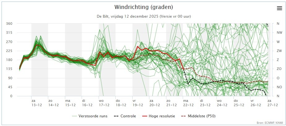 KNMI pluim De Bilt. Windrichting maakt ook een sprong