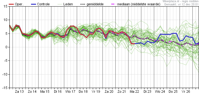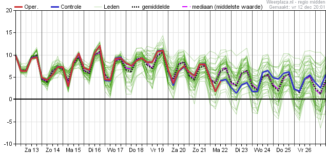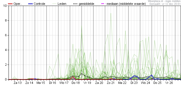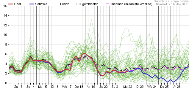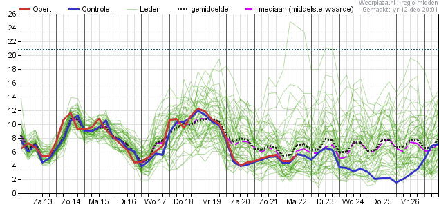 Wel moet worden opgemerkt dat er vanaf de 22e steeds verder toenemende spreiding is, wat aan geeft dat de situatie onzeker is.
