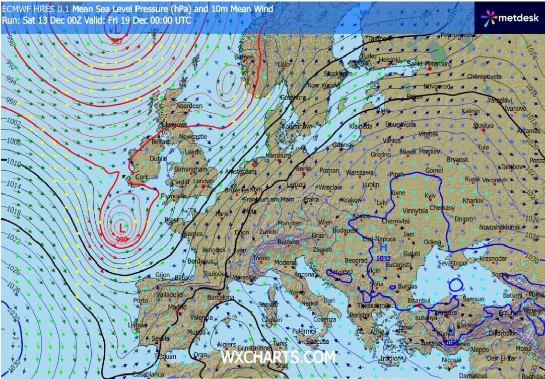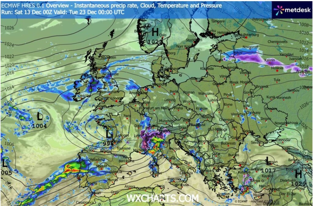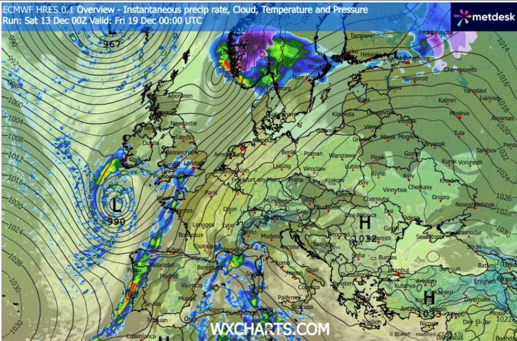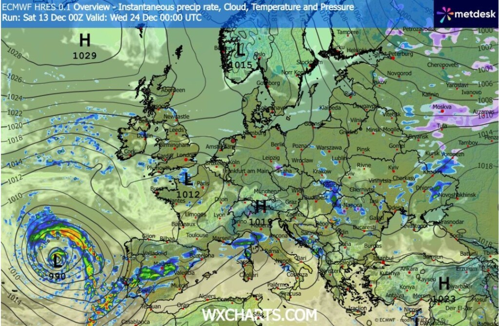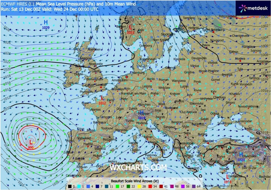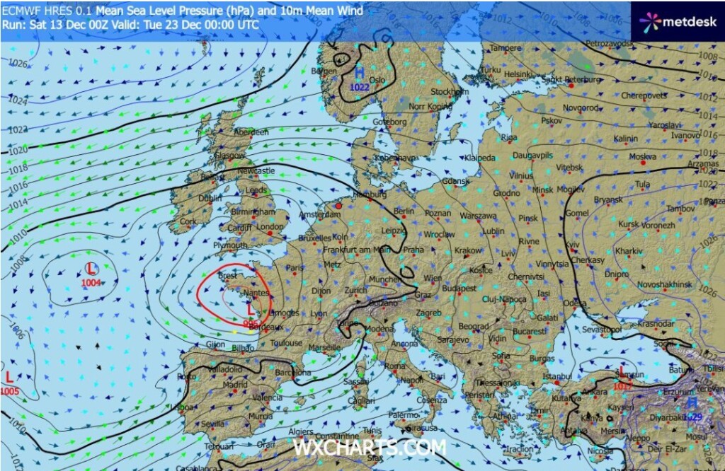 EC oper 00Z. Op termijn lagedruk ten zuiden. Interessante run.
