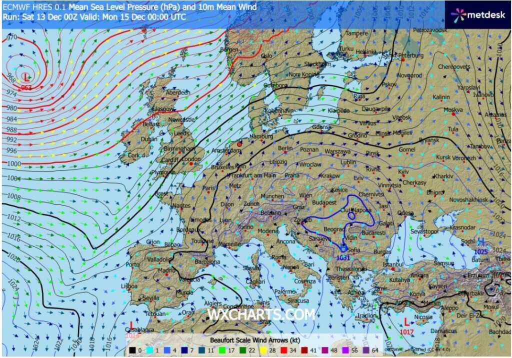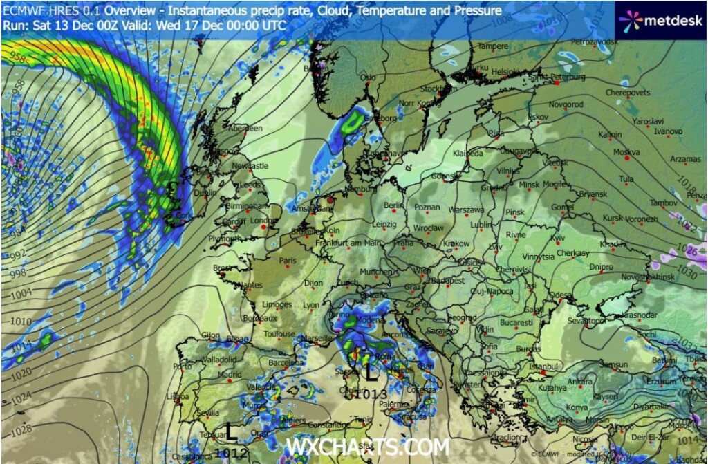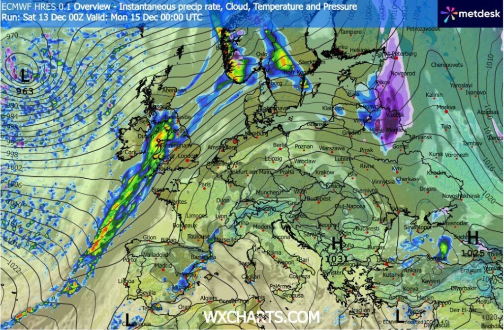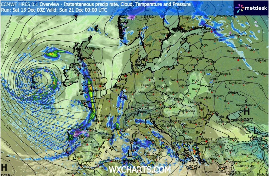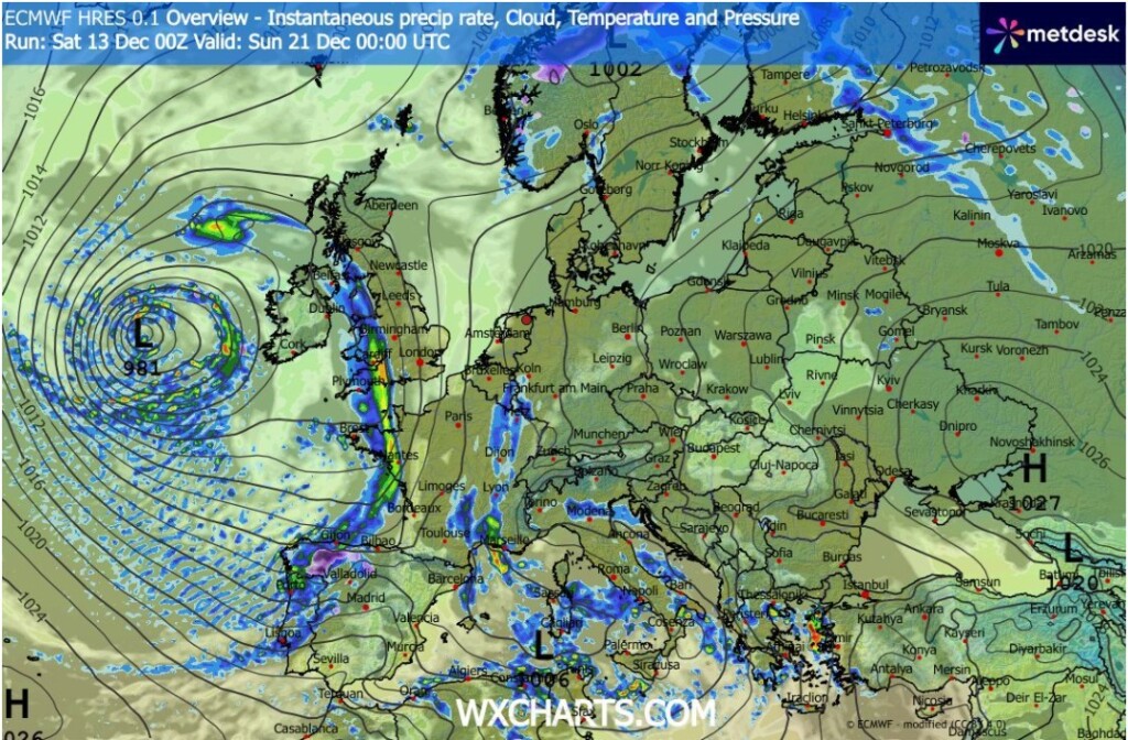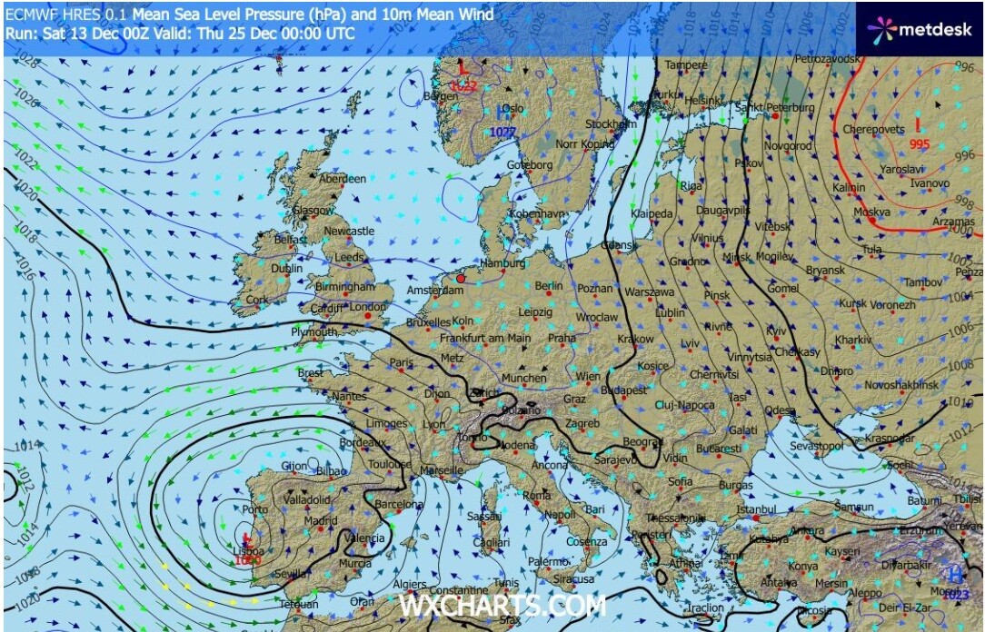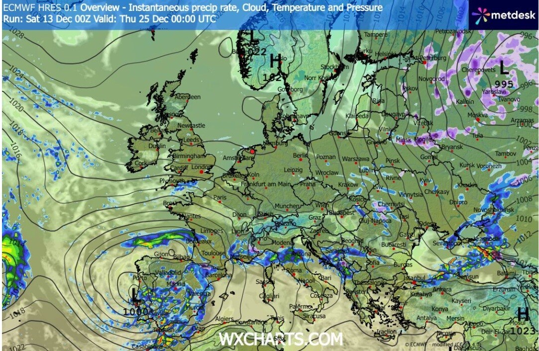 EC oper 00Z. Op termijn lagedruk ten zuiden. Interessante run.