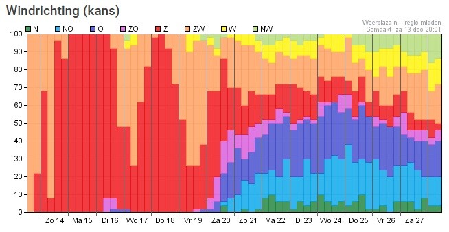 De komende week staat er nog geregeld behoorlijk wat wind. Met de meeste wind op zondag en maandag en daarna op donderdag.
