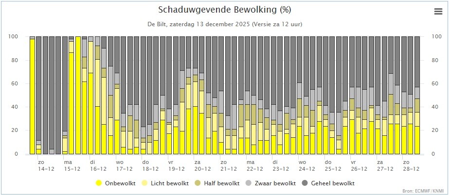 Er wordt de komende tijd geen noemenswaardige neerslag verwacht. Daarmee lijkt het droge jaar droog te eindigen onder invloed van hogedrukgebieden.