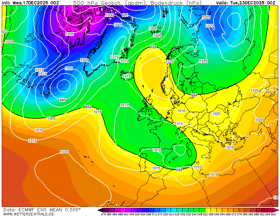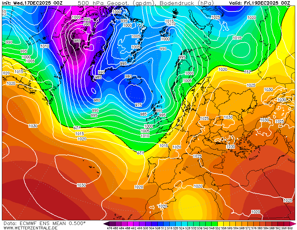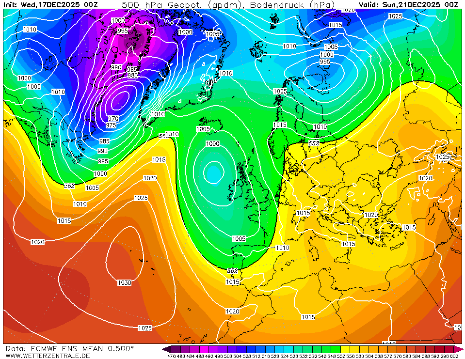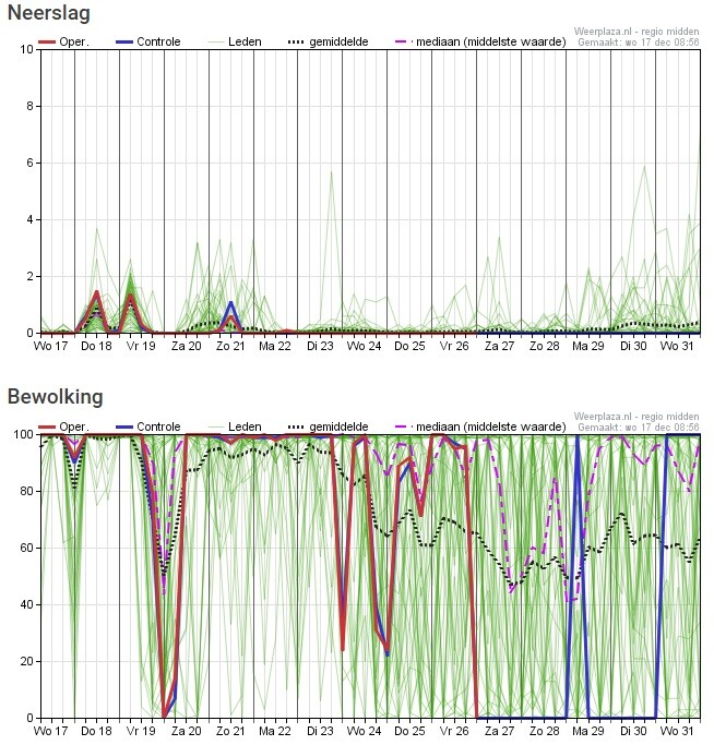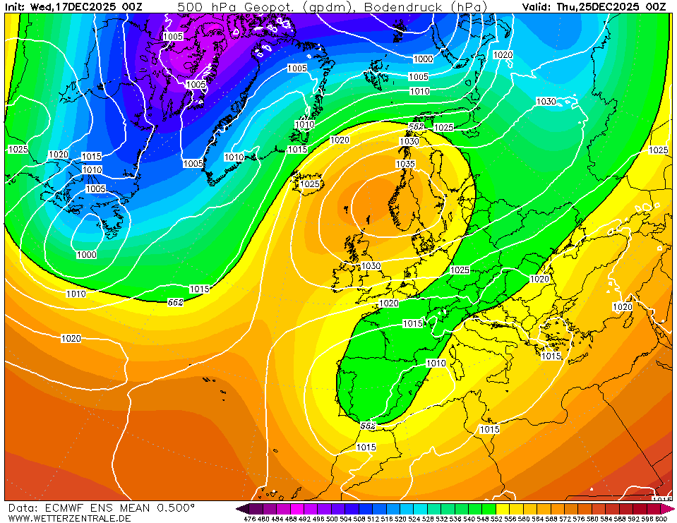 De eerste dagen erg zacht en veel wind. Daarna volgt een overgang naar een weertype met hoofdzakelijk wind uit noordoostelijke richtingen. Vanuit deze hoek wordt geleidelijk koudere lucht aangevoerd. Dit zou na de kerst kunnen leiden tot licht winters weer met vorst in de nachten en overdag temperaturen net iets boven het vriespunt.