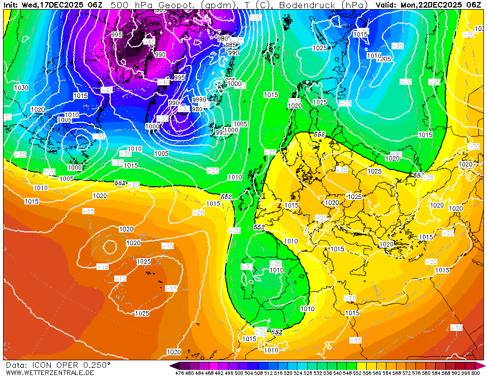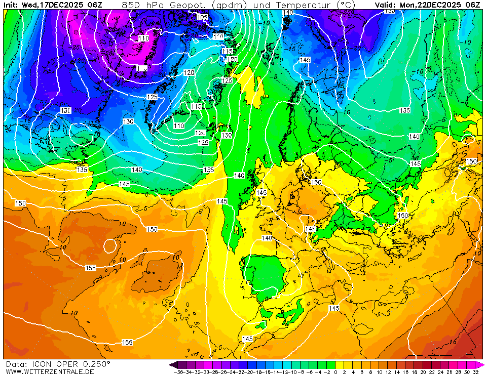 Kou uitstroom op de oceaan is west naar oost en hoog is meer een deken/walm die zich over Europa neer legt. Het koelt nauwelijks af onder dat hoog. Vervolg lijkt mij minder kansrijk en eerder kans op een wc te geven, of zie ik iets over het hoofd? Grote verschillen op slechts 5 dagen vooruit.