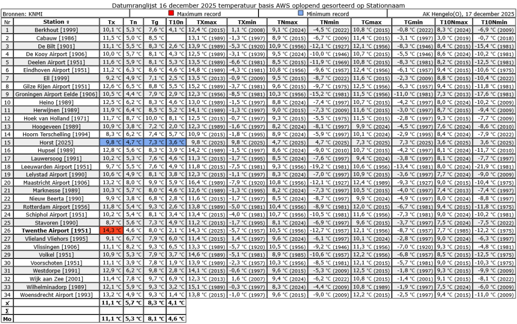 Het vorige dagrecord (14,1 °C) stamt uit 1989. December heeft hier nu 3 Tx dagrecords en staat daarmee gelijk met maart van dit jaar.