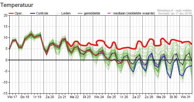 EC pluim 00Z. De Bilt. Weerplaza-uitvoering