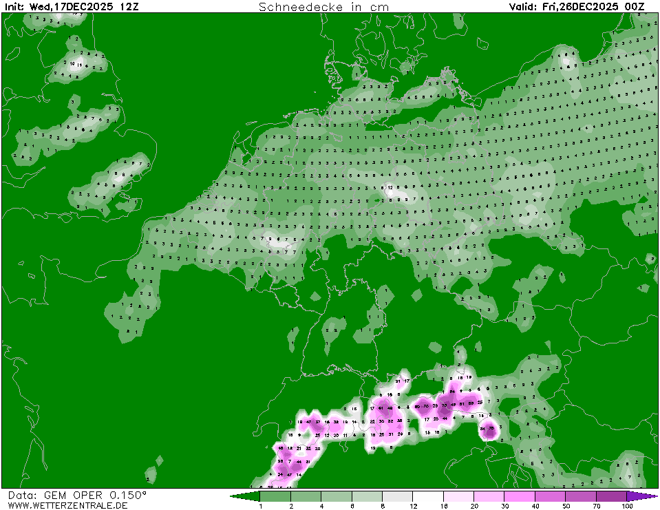 Ook bij dit model wat sneeuw, vooral vanaf 2e Kerstdag