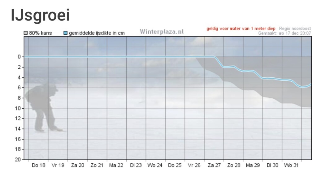 De maximale potentiële ijsdikte is ook iets meer dan vanochtend