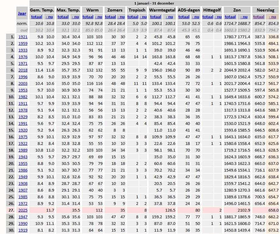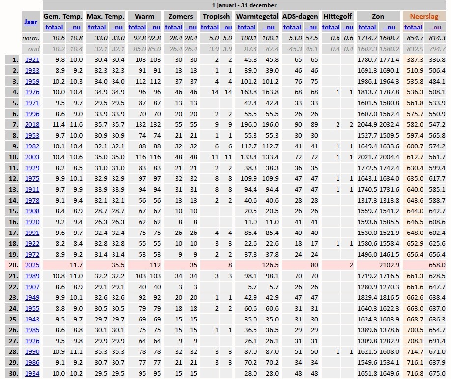 Wanneer er niets meer bijvalt komen we uit op een 20e plek van droogste jaren. 2003(10e plek) en 2018(7e plek) zijn niet meer in te halen.