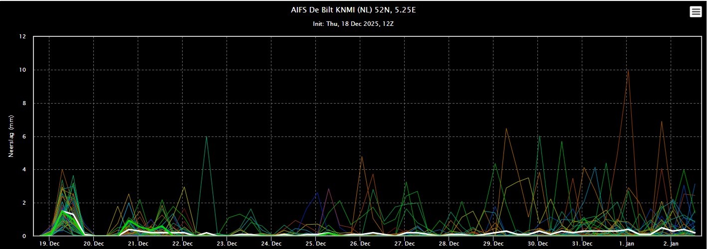 Ensemble AIFS 12Z. De Bilt. Kwakkelweer vanaf 25 december.
