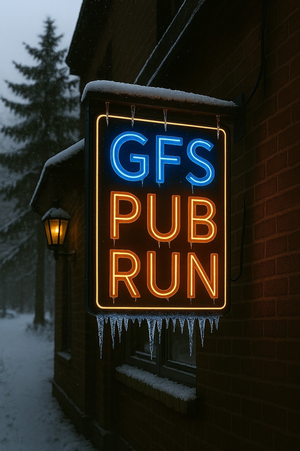 Heerlijk om weer laat op de avond de pubrun te kijken, net zoals vroeger. Hopend op winter. Laat het nu eens uitkomen.