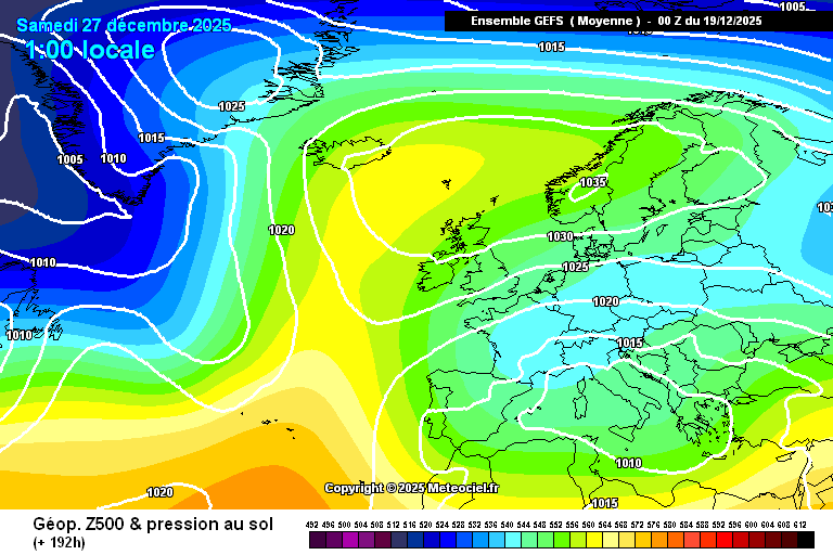 GFS00Z: koud winterweer volgens Control. Wel onderin ensemble