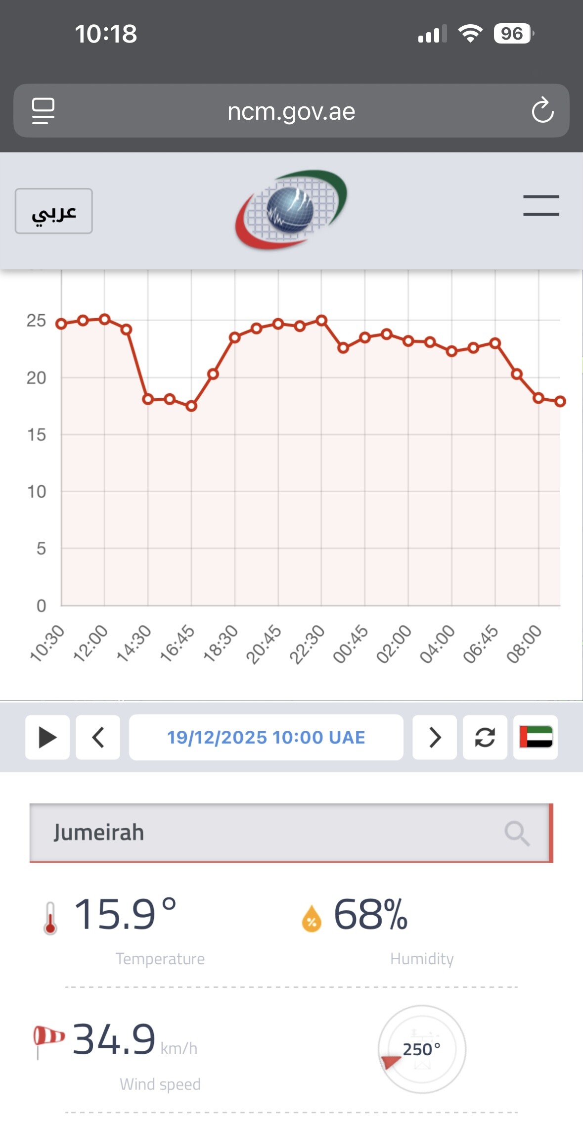 Terwijl een enkele Weerwoorder gisteravond met korte broek aan de barbecue zat en mensen ervan overtuigd zijn dat zich een nieuwe klimaatsprong heeft voorgedaan, is het hier in Dubai qua weer niet veel soeps. De afgelopen dagen weinig zon gezien en te veel wind, al was de temperatuur prima. Sinds gistermiddag viel de regen geregeld met bakken uit de hemel. Sneu voor mensen die een duur 5-sterrenhotel hebben geboekt (ik zat in een goede 3-sterren). Vandaag naar alle waarschijnlijkheid de terugreis.