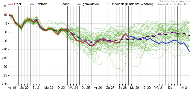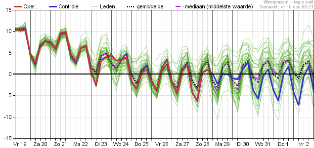 In de pluim van zuid kunnen we ook een paar nachten op rij richting matige vorst gaan en overdag iets boven nul. Dp blijven ook heel laag, dus hier kan het ook wel lukken. In grote lijnen is de pluim na 2de kerstdag wat afgekoeld. Al bij al toch een mooie licht winterse pluim.