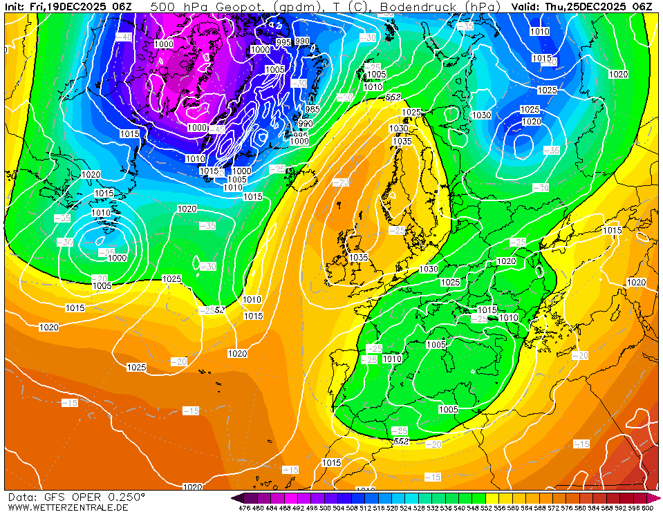 Eerste Kerstdag temperaturen nipt boven het vriespunt. Op de 24e "valt de vorst binnen". Lijkt mij een verbetering t.o.v. vorige run, met name op de Oceaan.