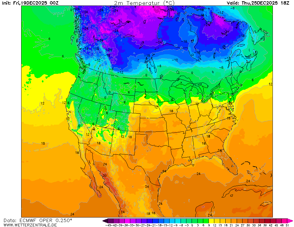 Waar wij in Europa winters weer krijgen met kerst, is het daar zacht/zeer zacht. Canada wel zeer koud.