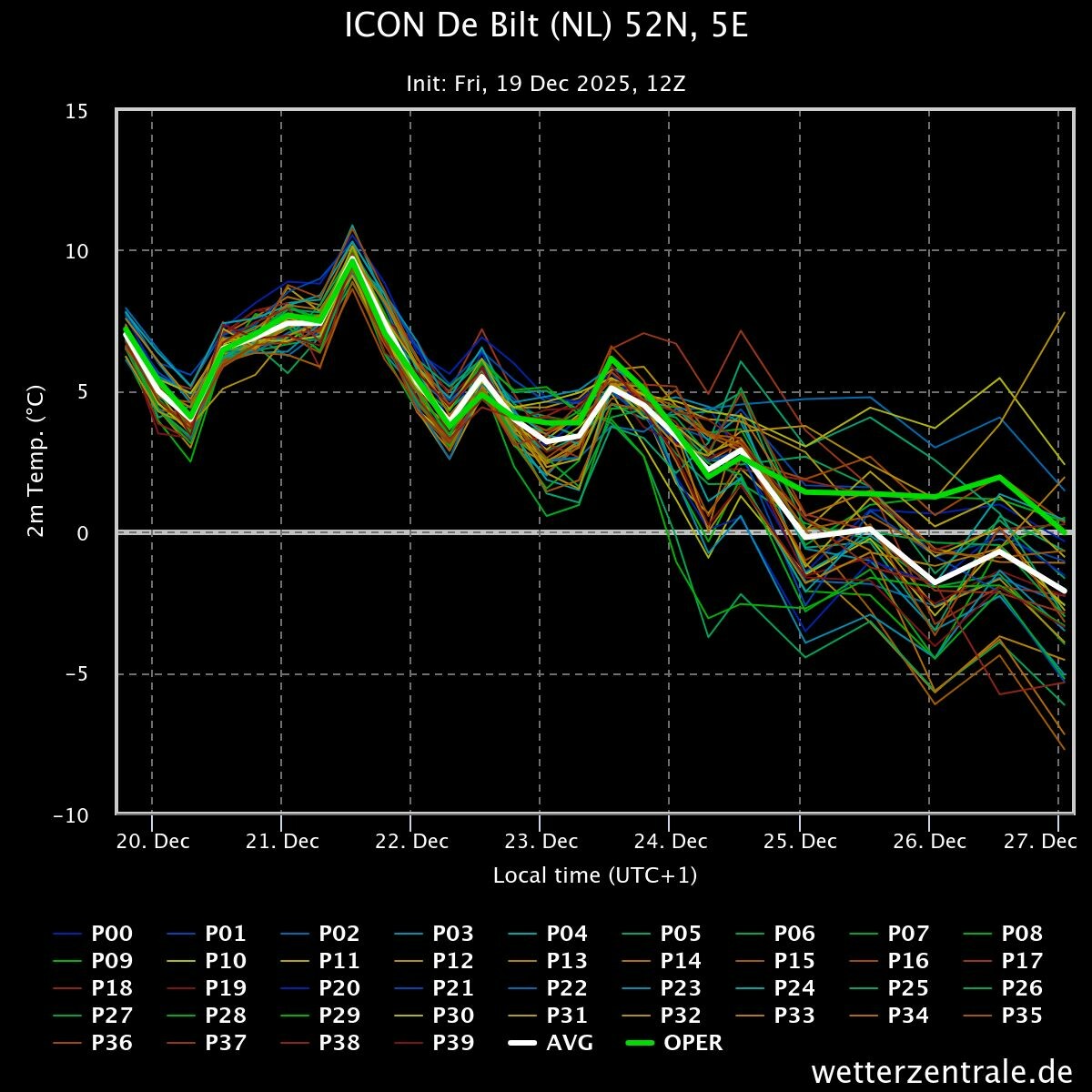 Ensemble weer wat kouder dan bij de 00Z.