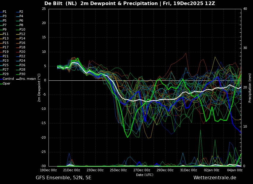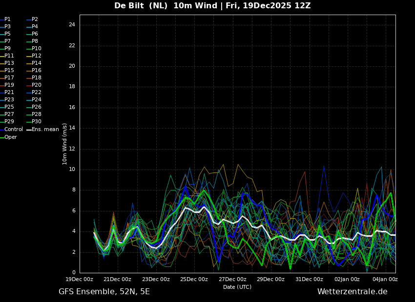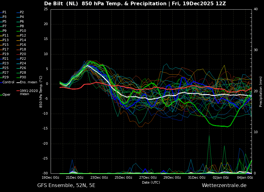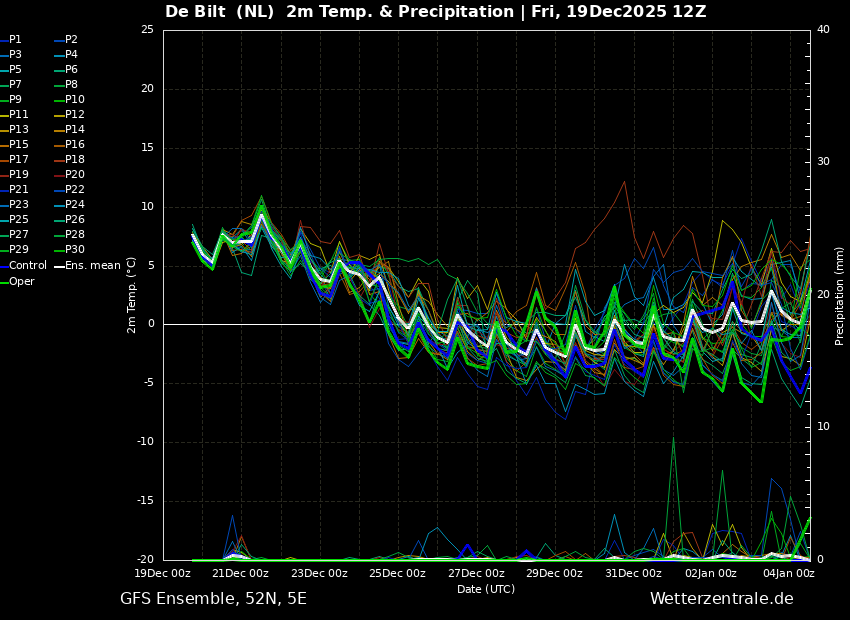 GFS ensemble volledige 384 uur. Plus aanvullingen. De Bilt