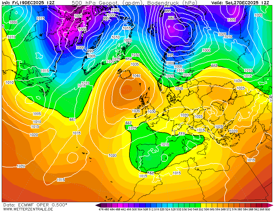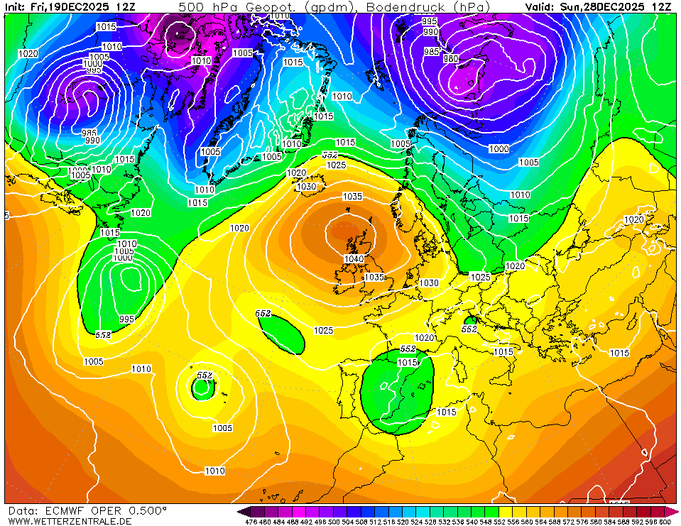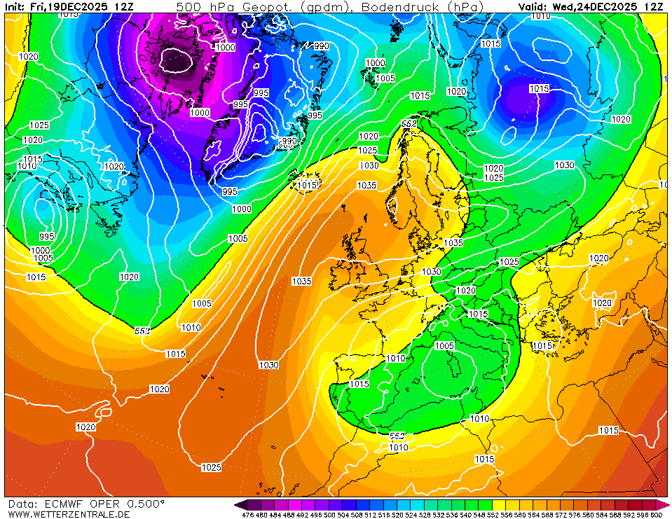 De hele run zit dar aanhangsel van hogedruk richting zuidoost europa in de weg en blokkeert de doorgang voor koudere lucht