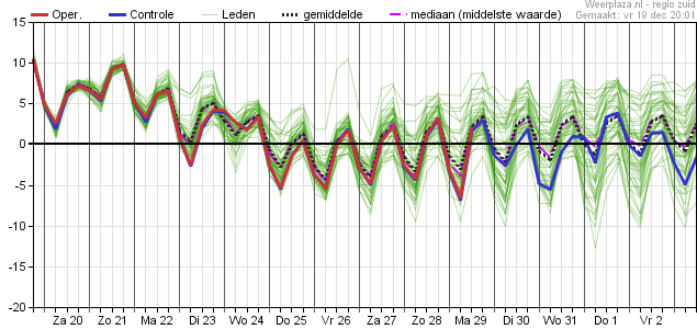 5-6 dagen met kansen op matige vorst en lager. De maxima mag na 26december wel wat lager, maar op de lange termijn blijvende kansen op matige vorst.