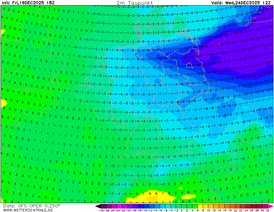 Puur continentaal arctisch, ik ben heel benieuwd wat voor minima dit gaat opleveren bij kraakheldere, windstille nachten.