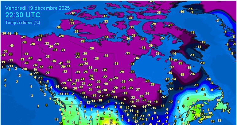Lokaal -47 °C nu in Canada. NW-Rusland lokaal -39 °C