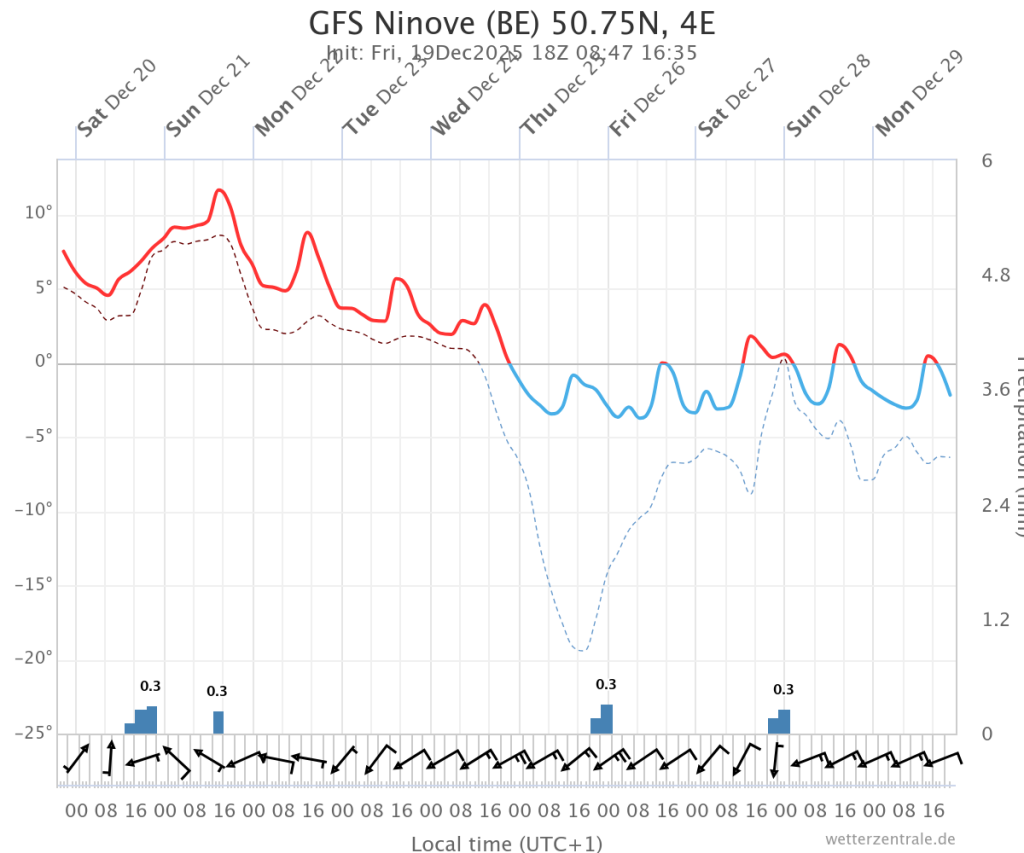 Vanaf de avond van kerstavond blijft het hier tem 29/12 voor 95% van de tijd vriezen. Heerlijke run wederom