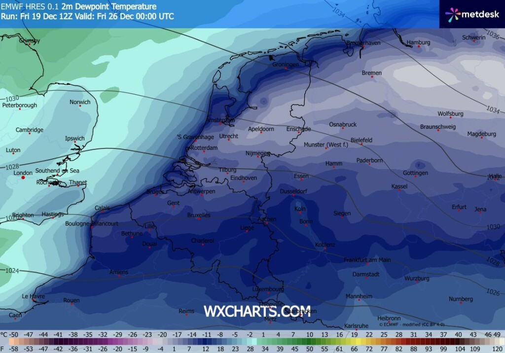 Dauwpunt keldert met een rotvaart richting de -20 in slechts 48 uur