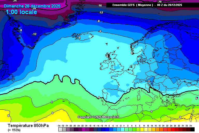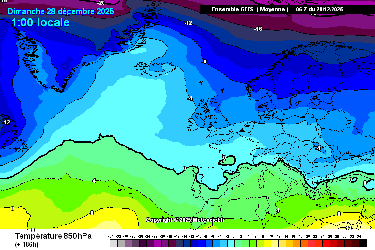 +186: T850 gemiddelde ondersteunt noord(oost)stroming