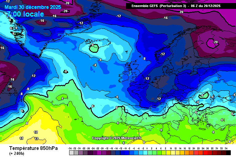 Bovenluchten van -12 tot -14 bij aanlandige aanvoer over de Oostzee en Noordzee, maar gewoon ruime ijsdagen. Wat wel belangrijk is is de vorm van het hoog, in dit scenario is het ideaal met uitlopers richting het oosten. Bij lid 4 is de stroming wat meer noord en dan heb je inderdaad geen ijsdagen ondanks bovenluchten van rond de -8 tot -10.