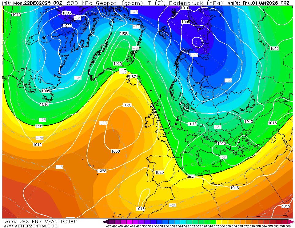 En op +10 dagen kun je er nog alle kanten mee op. Bij GFS is de rug iets scherper, waarschijnlijk door een nog wat grotere fractie noordelijke blokkades in het ENS.