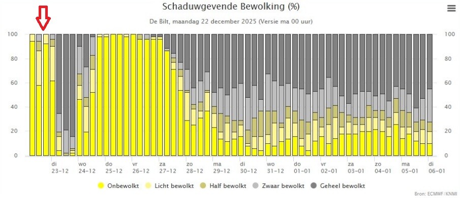 Weliswaar 7-8/8 dunne hoge bewolking werd er door EC berekend, maar getuige het diagram dat jij hebt geplaatst, toch rond 90% kans dat de zon daar niet significant door werd gehinderd.
