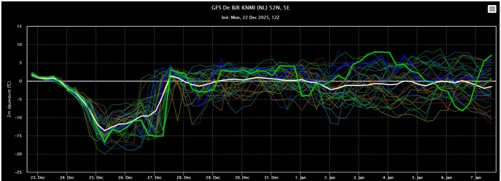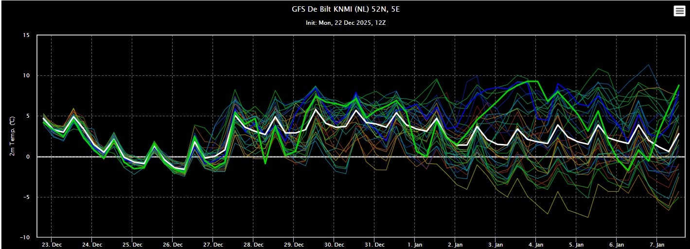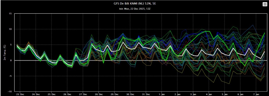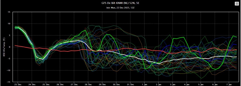 Ook bij de Amerikanen zien we koud winterweer met kerst. Daarna een verzachting richting normale waardes. Kijken we een keer naar de UUUULT dan zien we ook hier niet echt zacht winterweer. En dat geeft toch enige hoop voor de verstokte winterfanaten.