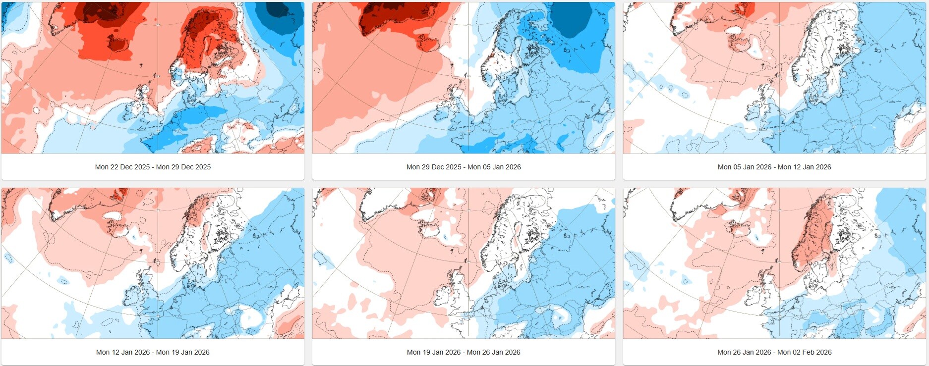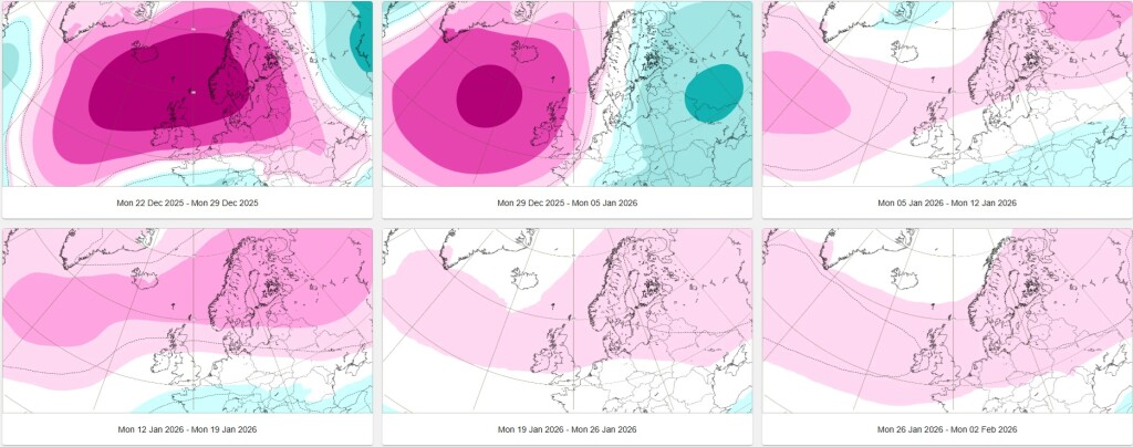 Maar het sein dat we kouder weer krijgen dan normaal is nog steeds duidelijk aanwezig. Met een hogere luchtdruk dan normaal vaak ten noordwesten of ten noorden