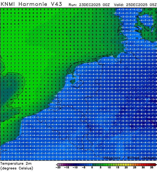 Re: Harmonie 00Z: Lokaal matige vorst op kerstochtend